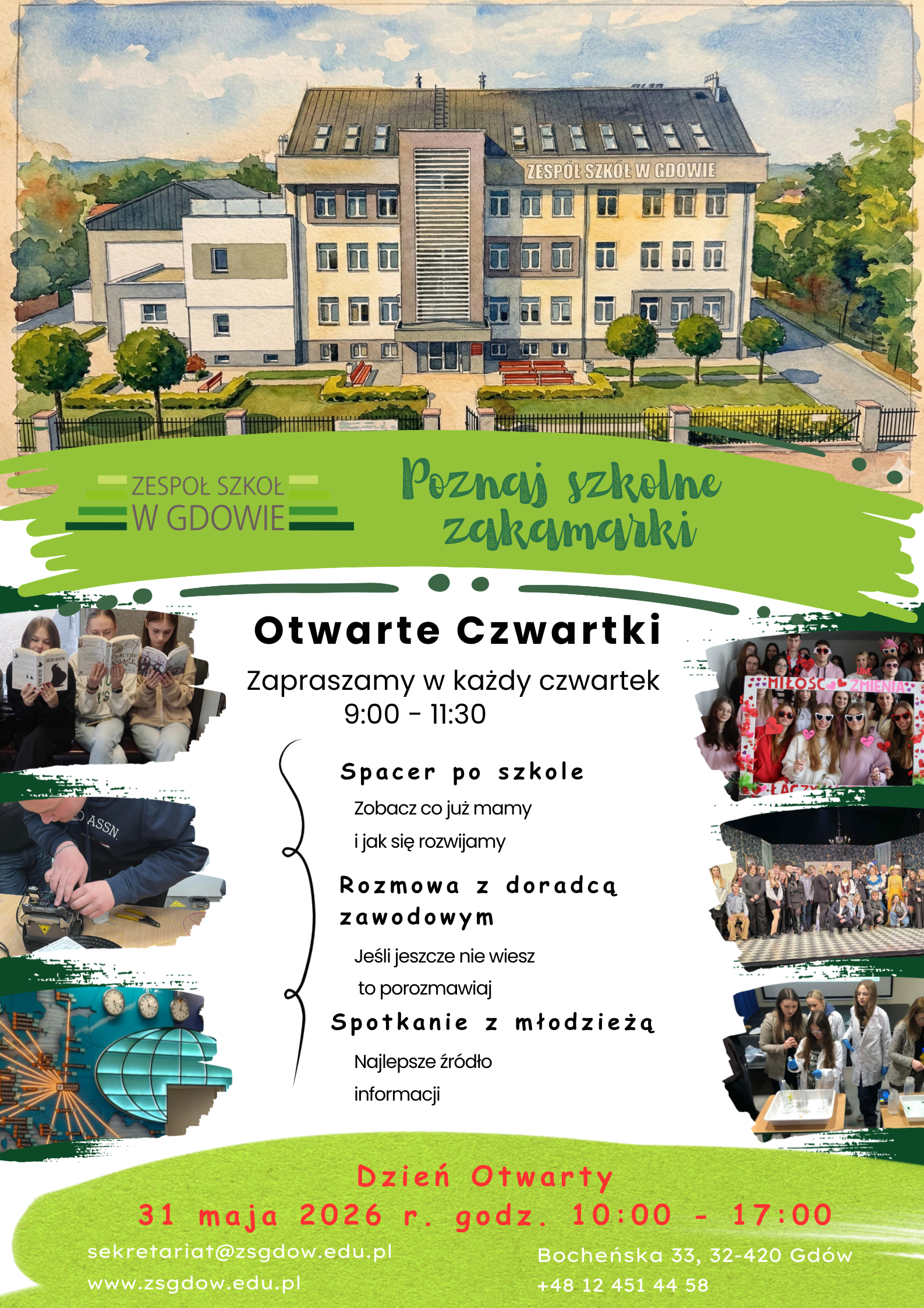 Wszystkie dokumenty dotyczące rekrutacji można składać w formie elektronicznej na adres e-mail: rekrutacja@zsgdow.edu.pl